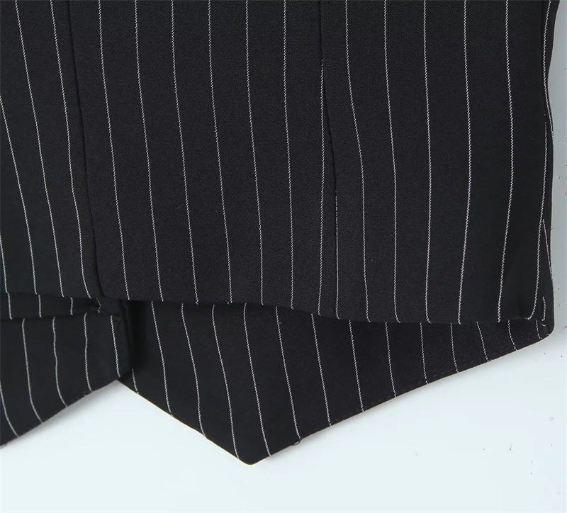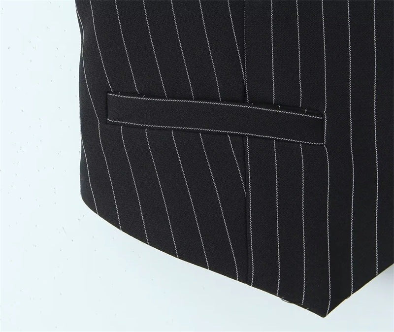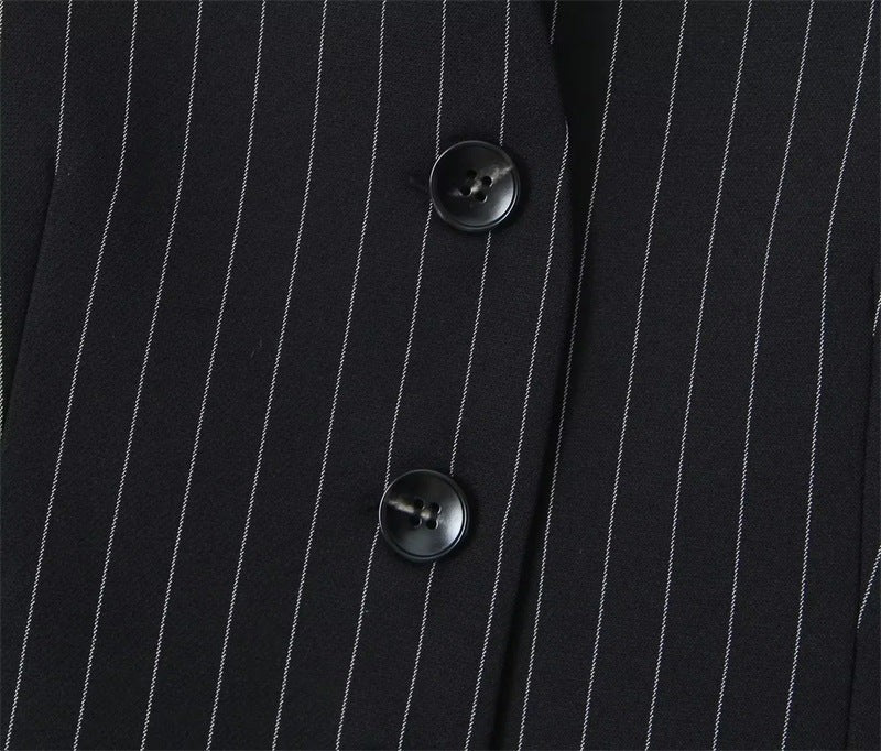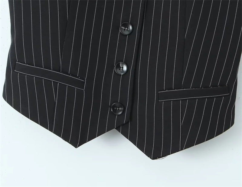 The Marisol Halter Waistcoat in black features a V-neck halter silhouette and tailored fit for a polished look. Made from 100% polyester. Available in S, M, and L. Note: manual measurements may vary by 1-3 cm. Runs one size larger than standard; consider sizing down.